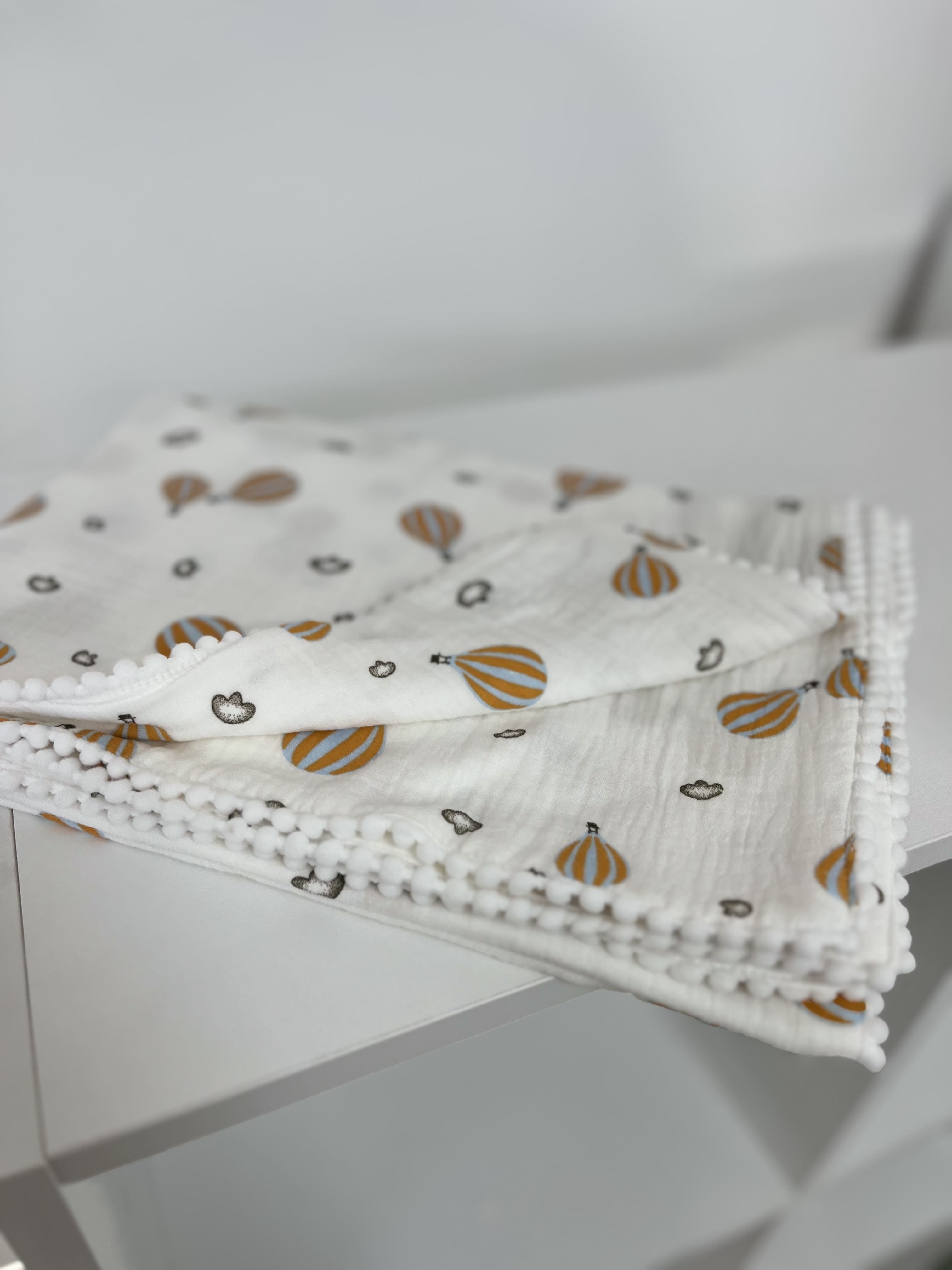 Легкий плед с тесьмой из 4 слоев муслина. Размер пледа 100х70 см. Подойдет для дома и путешествий. Удобно брать в роддом.