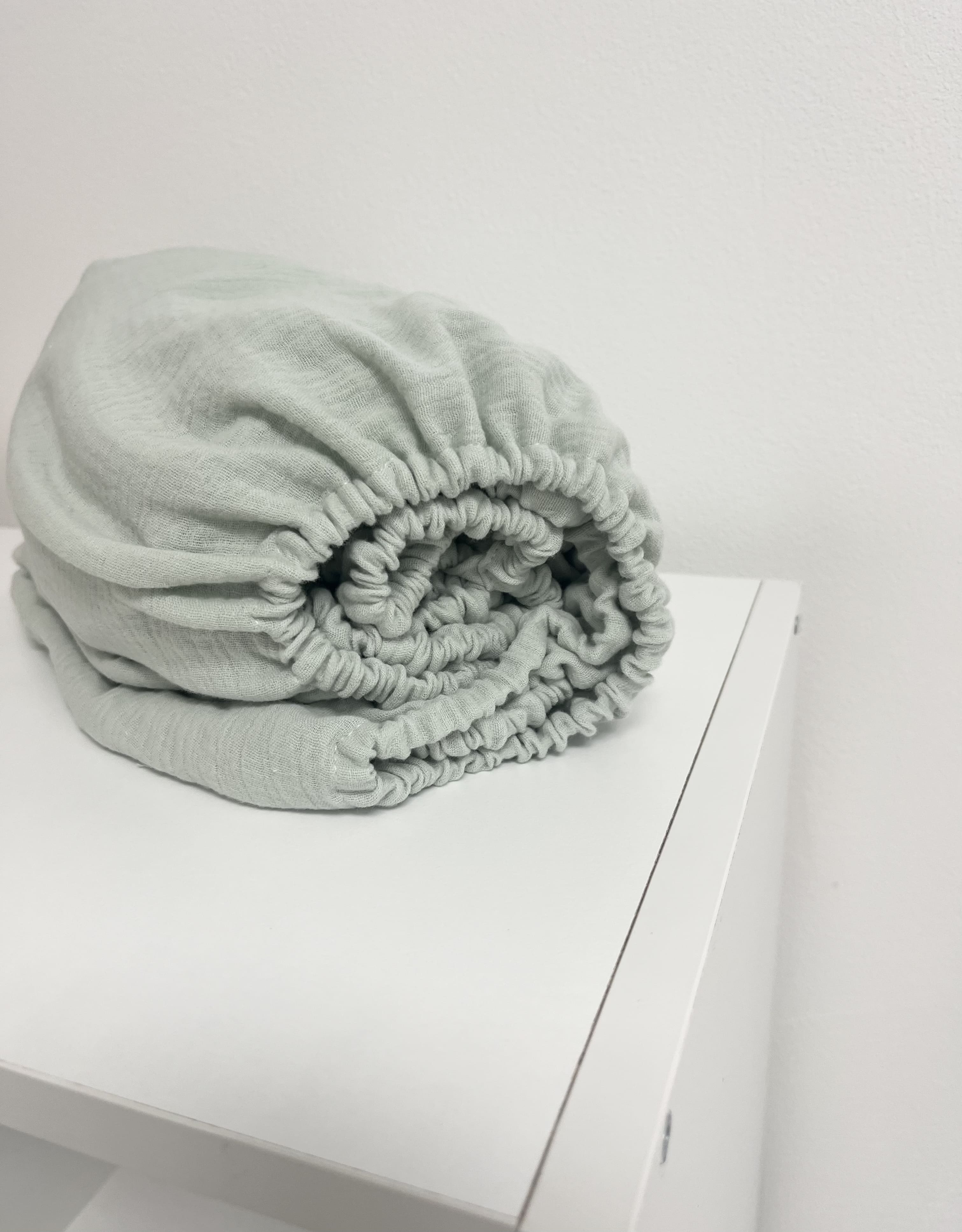 Простынь по всему периметру на резинке. Фиксируется на матрасе, не съезжает, не сминается. Принимает форму матраса. Муслин самая мягкая ткань для новорожденных.