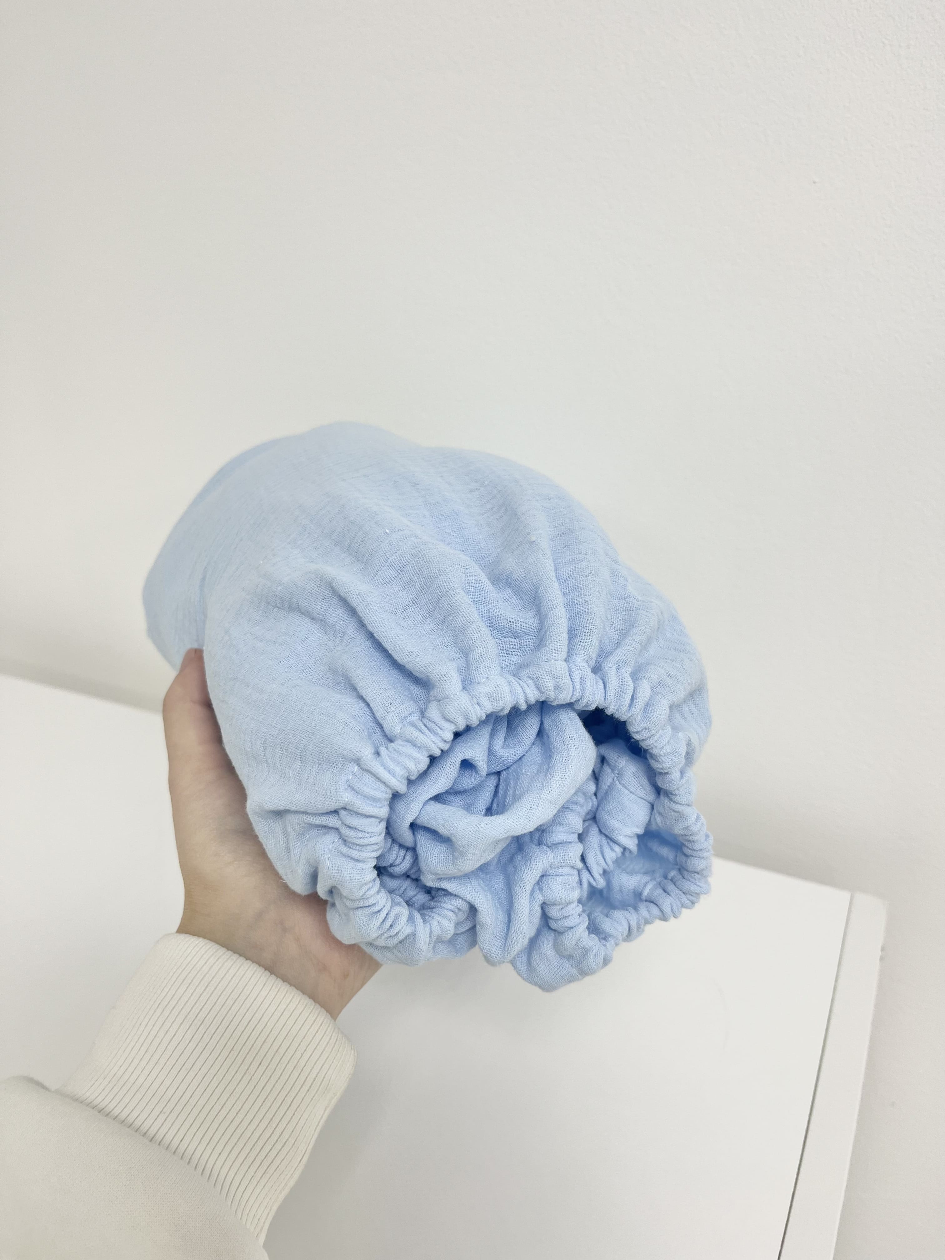 Простынь по всему периметру на резинке. Фиксируется на матрасе, не съезжает, не сминается. Принимает форму матраса. Муслин самая мягкая ткань для новорожденных.